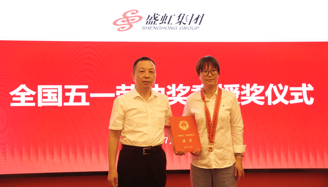 7月12日,江蘇省財貿(mào)輕紡工會四級調(diào)研員封波一行來到盛虹集團,為“全國五一勞動獎章”獲得者盛虹集團有限公司生產(chǎn)技術(shù)部組長、高級工程師、高級工錢琴芳頒發(fā)獎牌和榮譽證書。